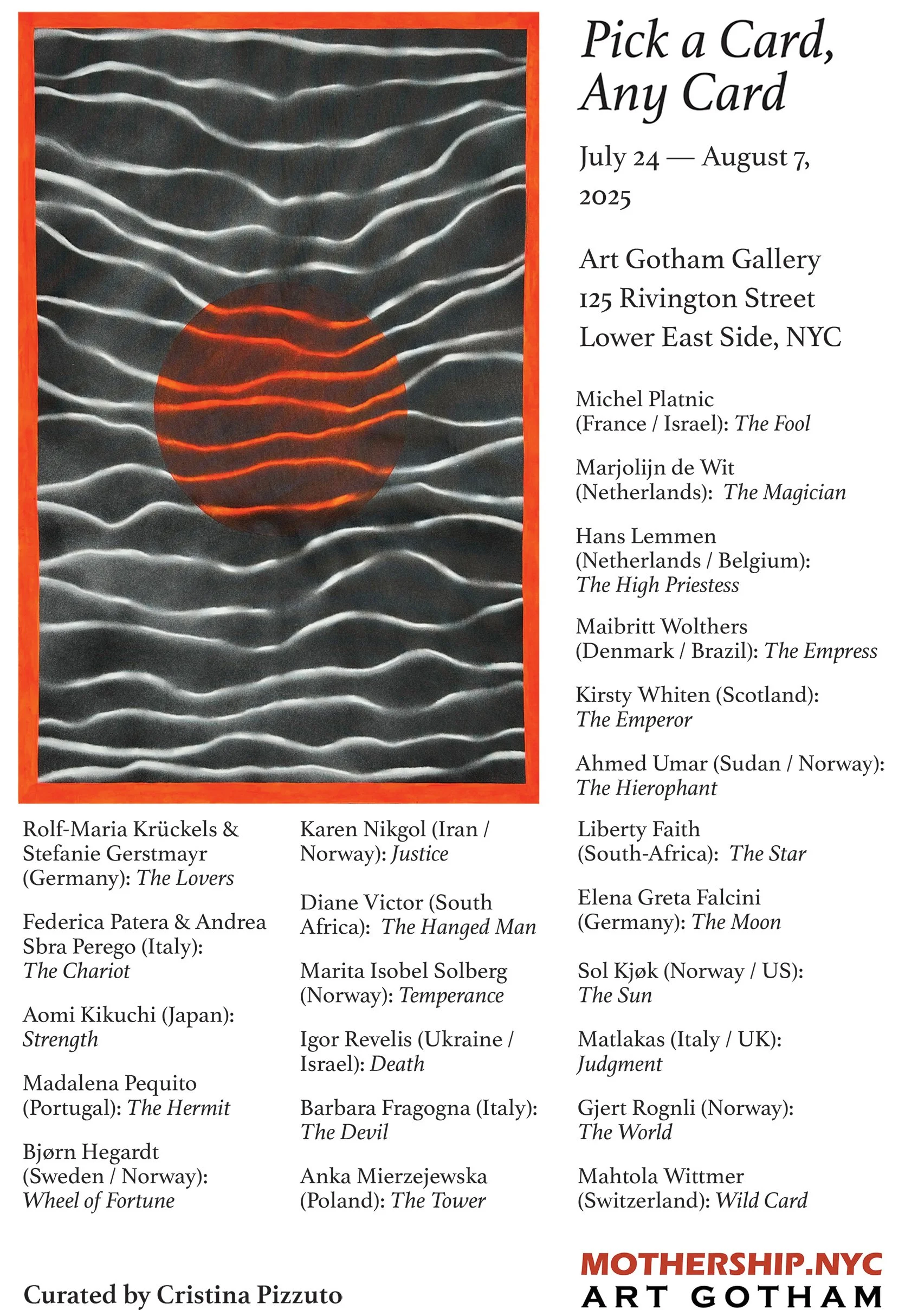 This initial round presents the 22 Major Arcana cards of the Tarot deck. For the subsequent exhibitions, we will also add interpretations of the 56 Minor Arcana cards by other Mothershipper artists from all over the world. When all artworks are complete, we will print an actual Tarot card deck—feel free to reach out if you want one!